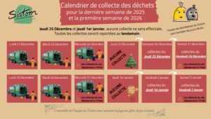 Les mercredi 24 et 31 décembre les déchèteries fermeront leurs portes à 15h45. Merci de votre compréhension et bonnes fêtes !